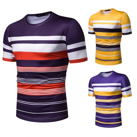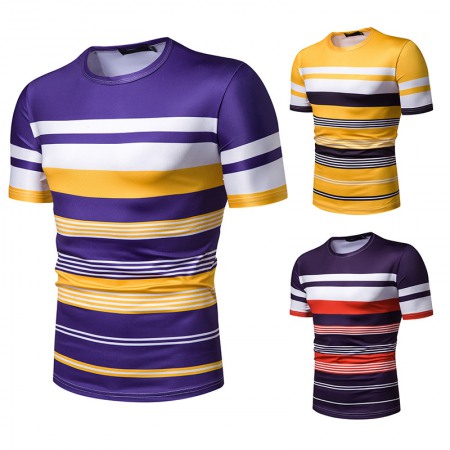 New Summer Men's Short-Sleeved T-Shirt Mens Contrast Striped Slim Casual T-Shirt