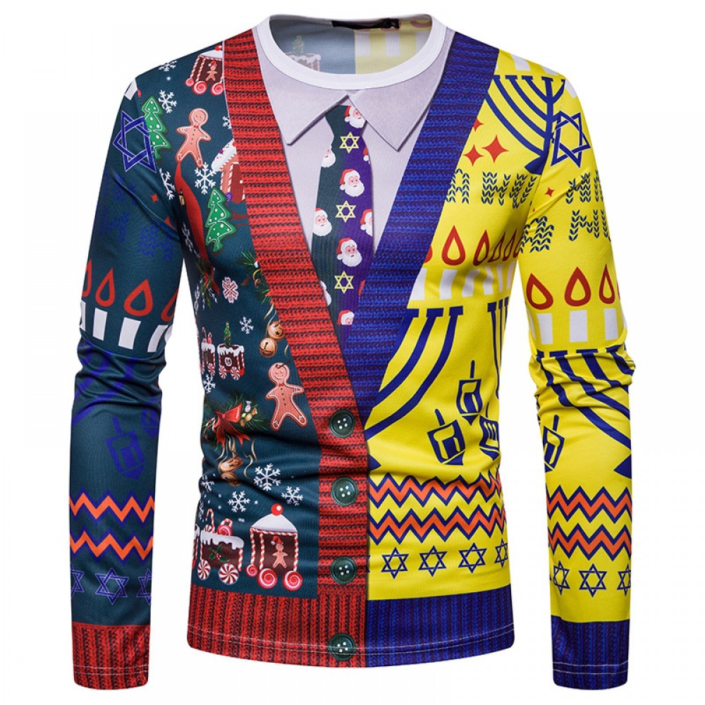 New 3D Personality Printing Fashion Men's Christmas Long-Sleeved T-Shirt