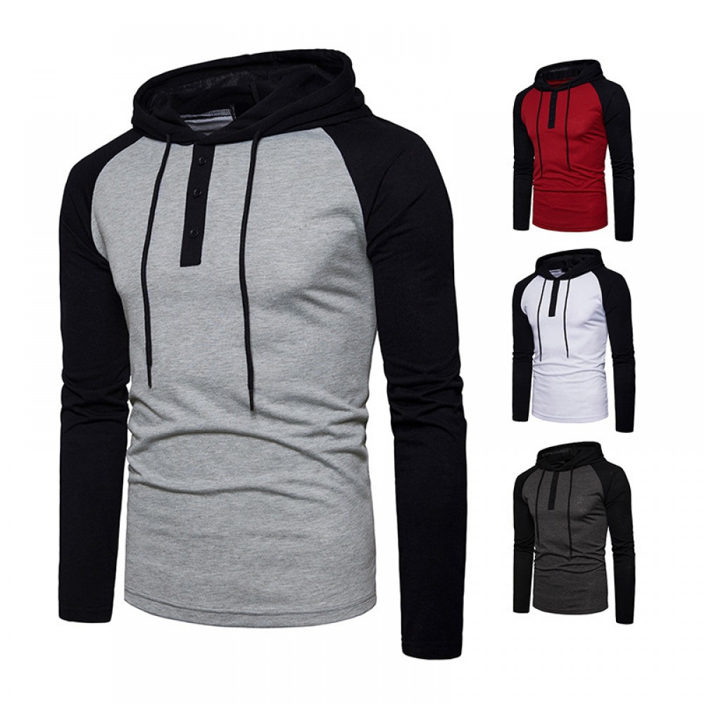 Men's Hip-Hop Access Control Color Matching Men's Raglan Long-Sleeved Sports Hoodie Pullover