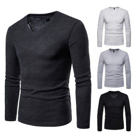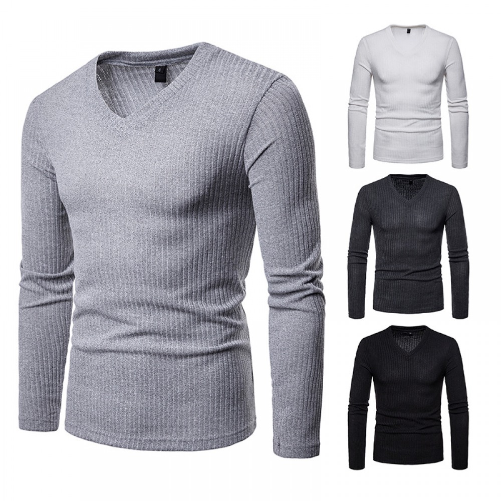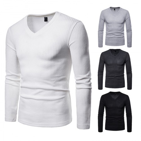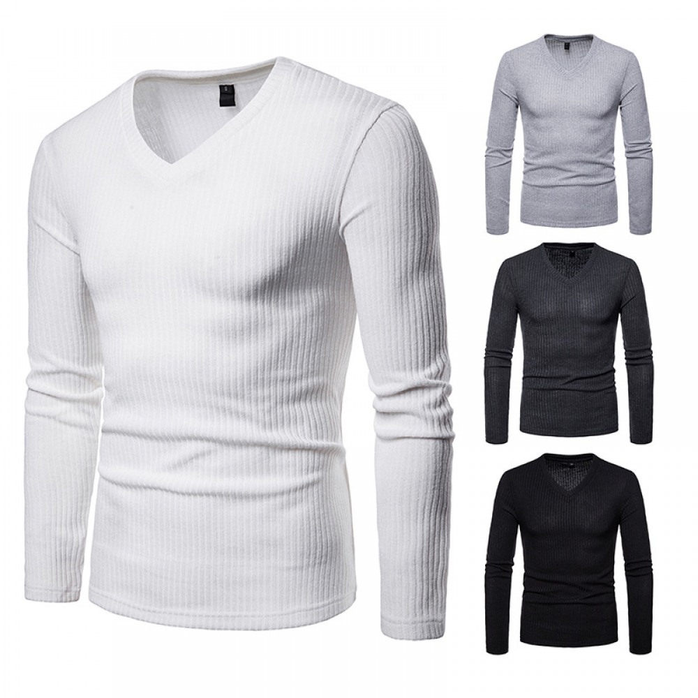 Men's Plus Size V-Neck Long-Sleeved T-Shirt Base Shirt