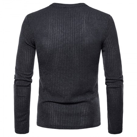 New Men's Long-Sleeved T-Shirt Slim Collar Solid Color Shirt