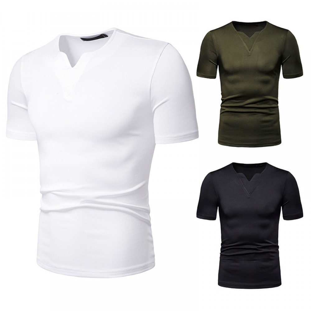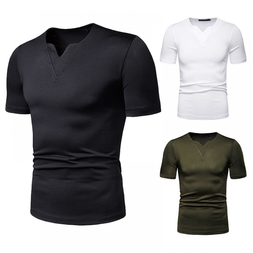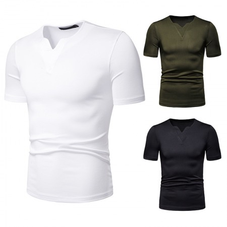 Men's T-Shirt V-Neck Solid Color Shiny Nightclub Design Dynamic Fashion Sexy Men's Short Sleeve T-Shirt