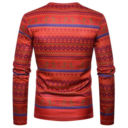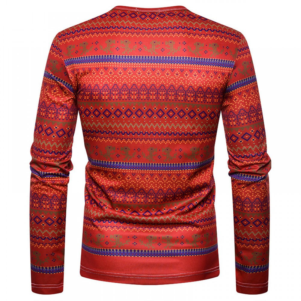New 3D Personality Printing Fashion Men's Christmas Dinosaur Pattern Long-Sleeved T-Shirt