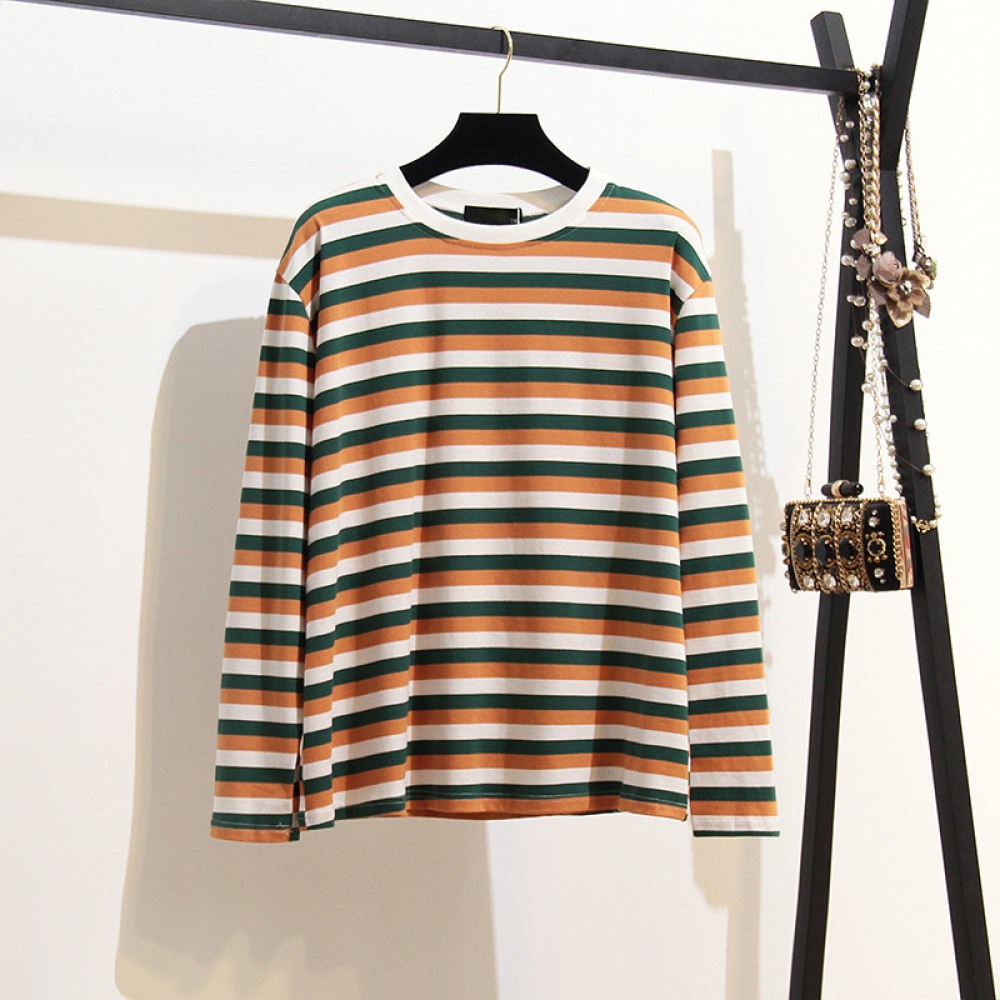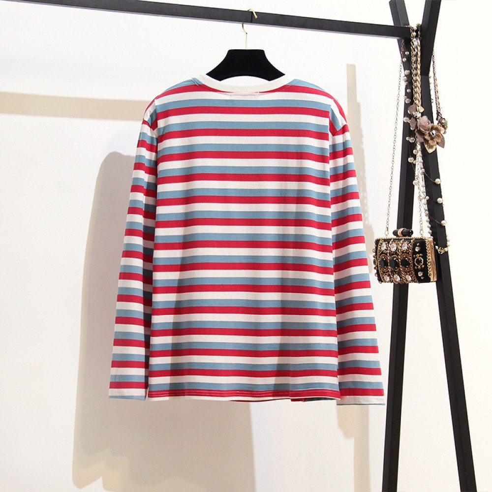 New Super Large Size Women's Striped T-Shirt Fat Fashion Thin Color Striped Bottoming Shirt