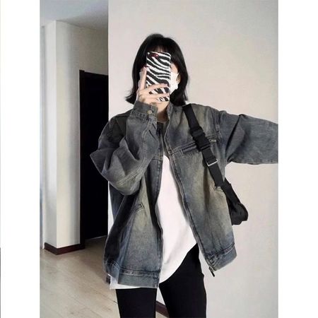 Retro Round Neck Blue Short Denim Jacket Loose And Slim